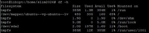 - cek dengan perintah #df -h