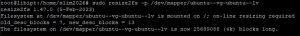 - Jalankan perintah #sudo resize2fs -p /dev/mapper/ubuntu–vg-ubuntu–lv