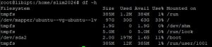 - Kemudian cek lagi dengan perintah #df -h
